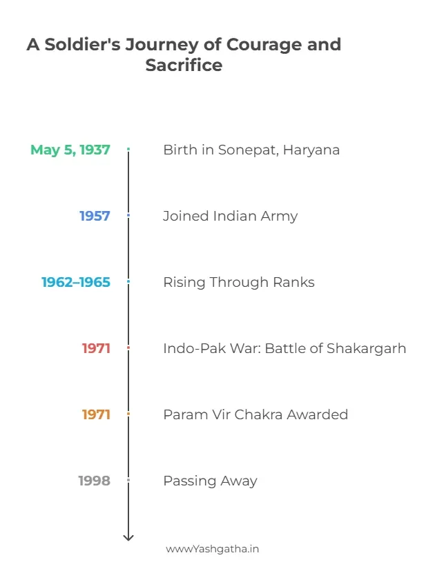 Major Hoshiar Singh Dahiya, born in Sonepat, Haryana, was a fearless Indian Army officer awarded the Param Vir Chakra in 1971 for his extraordinary bravery and leadership during the Battle of Shakargarh, famously known for his motto: ‘Duty first, always. Major Hoshiar Singh Dahiya, a fearless hero from Haryana, became a legend during the 1971 Indo-Pak War. Leading his troops with unmatched courage at the Battle of Shakargarh, he defied injuries, captured enemy positions, and earned India’s highest wartime honour—the Param Vir Chakra. His story is a testament to bravery, leadership, and unwavering dedication to the nation.