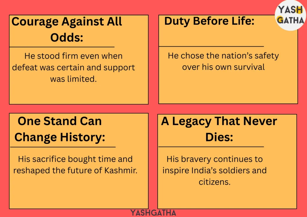 • Symbol of Sacrifice: He came to be remembered as the man who bought time for India to defend Kashmir.
