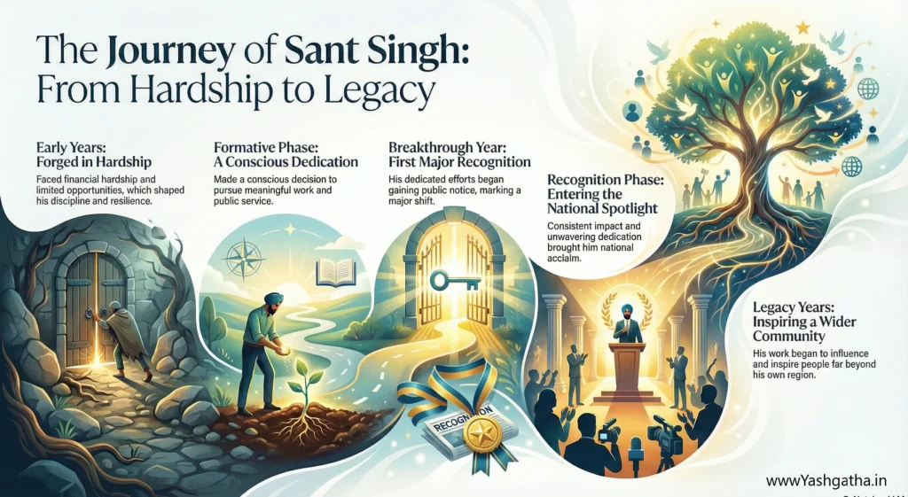 Despite facing repeated setbacks, Sant Singh never allowed circumstances to dictate his future. He struggled for access to proper guidance and recognition, yet his determination kept him moving forward. Every obstacle became a lesson, and every failure shaped his character. These early struggles laid the foundation for a life driven by purpose, resilience, and an unbreakable belief in the power of perseverance.