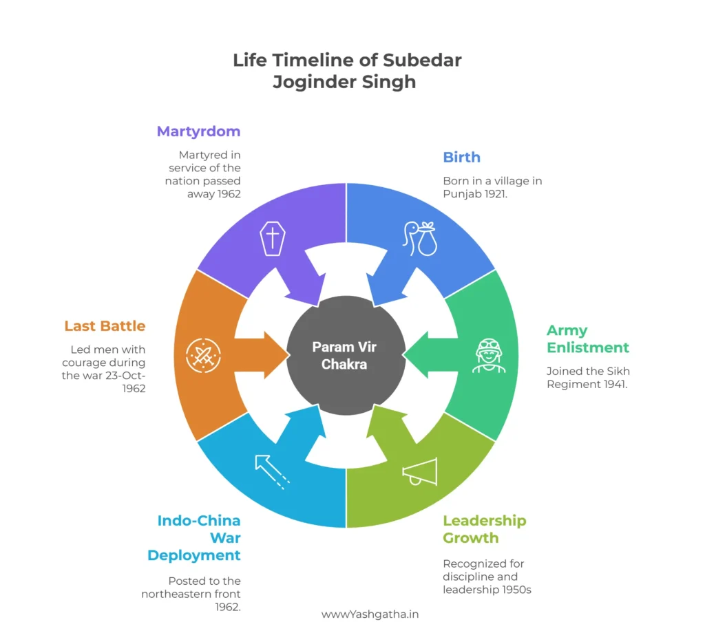 Subedar Joginder Singh, a brave soldier from Mahla Kalan in Punjab, was awarded the Param Vir Chakra in 1962 for his extraordinary courage and leadership during the Indo-China War. Subedar Joginder Singh, one of India’s most fearless soldiers, rose from a humble village in Punjab to become a national icon of courage. Best known for his unmatched bravery during the 1962 Indo-China War, he led his men in a historic last stand that continues to inspire generations. His story is a timeless reminder that true heroism is born in moments of overwhelming odds—and lived through the legacy one leaves behind.