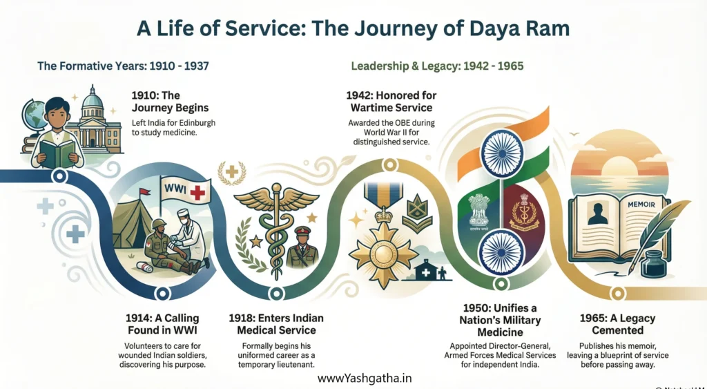 Lieutenant General Daya Ram Thapar was born on 6 April 1894 in Dalhousie, Punjab, during a time when India was still under British rule. He grew up in a disciplined, education-oriented environment where service and responsibility were deeply valued. From an early age, Thapar showed a sharp mind, physical resilience, and a natural inclination toward leadership. In 1916, during the turbulence of the First World War era, Thapar was commissioned into the British Indian Army. His early service exposed him to harsh terrains, long campaigns, and the unforgiving realities of soldiering. He served in difficult frontier regions and later during the Second World War, gaining operational experience that would quietly prepare him for greater responsibilities ahead.